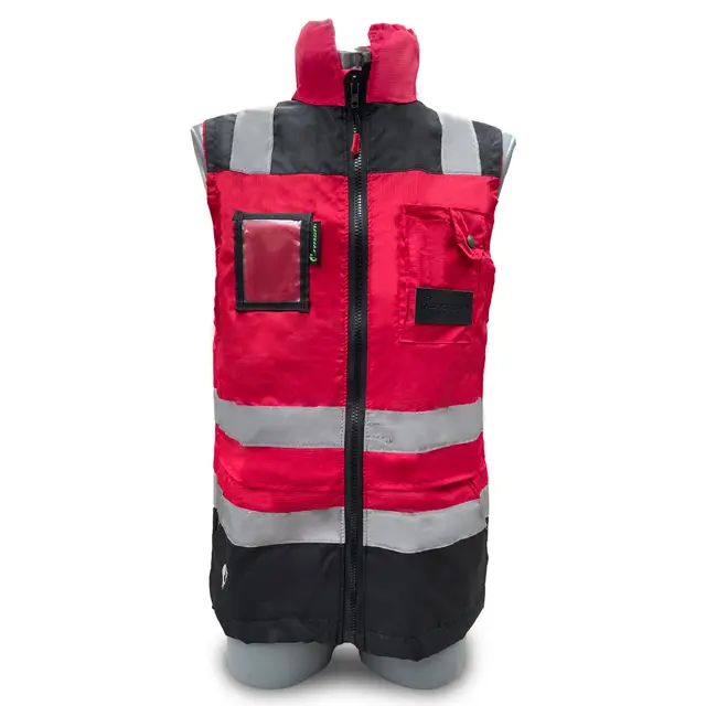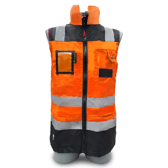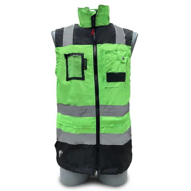 Los chalecos ejecutivos de la marca Jyrsa cumplen con la norma ANSI/ISEA 107-2020, brindando alta visibilidad en actividades fuera de la carretera. Confeccionado en 100% poliéster, ofrece características como bolsa porta plumas, solapa, reflejante textil de 2”, cierre de seguridad, y mica porta gafete. Ideal para manufactura, supervisión, actividades deportivas, almacenaje y construcción.