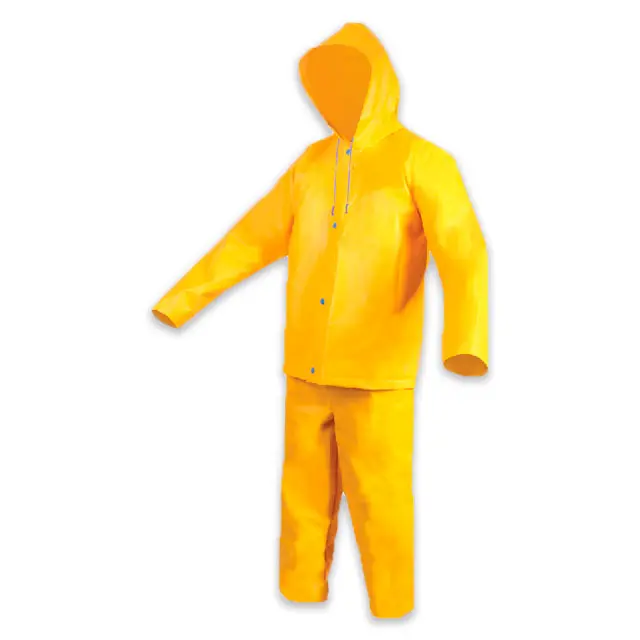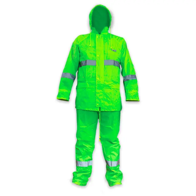 Actualmente contamos con tipo gabardina, con conjunto de chamarra y pantalón, con capamanga. Algunos modelos los manejamos con reflejante para una mejor ubicación y visibilidad de los colaboradores.